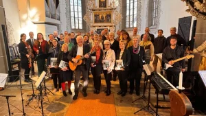 …und ein wunderbares Schlusskonzert in der Marktkirche zusammen mit den Liedermachern Jan von Lingen und Lothar Veit, „meinen“ Musiker/innen Konstanze Kuß (Harfe, Flöten, Percussion), Charlotte Fritz (Violine) und Valentin Brand (Piano) – und dem Jugendchor St. Sixti Northeim. Eine tolle Besetzung! Mittendrin gab es eine Überraschung für mich…